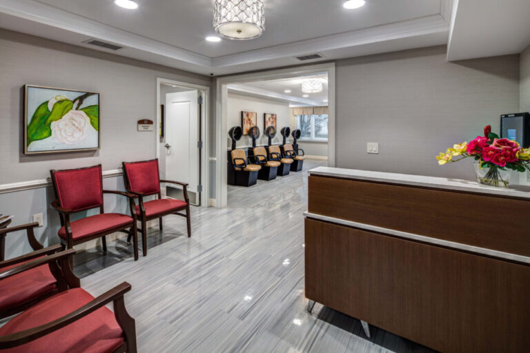 The skilled nursing neighborhood at The Oaks at Denville offers 24-hour nursing care, assistance with activities of daily living, medication management, wound care, nutrition support, and various rehabilitation services such as physical, occupational, and speech therapy.